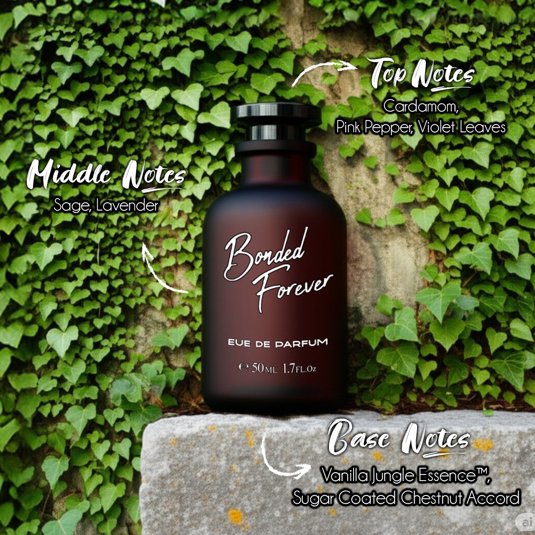 Bonded Forever celebrates love and intimacy. Inspired by Stronger With You, it combines roasted chestnut and sweet vanilla with a heart of aromatic spices. A warm woody base ensures lasting sensuality, making it the perfect fragrance for romantic souls.